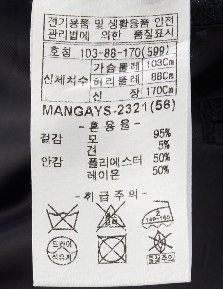 겉감 : 모 95% 견 5% 안감 : 폴리에스터 50% 레이온 50%