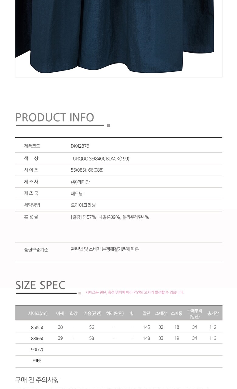 6. 세탁방법 및 취급시 주의사항 | 상세페이지참고 |