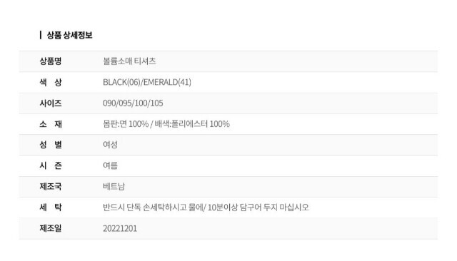 | 1. 제품 소재 (섬유의 조성 또는 혼용률을 백분율로 표시, 기능성인 경우 성적서 또는 허가서) | 상품상세참조 |