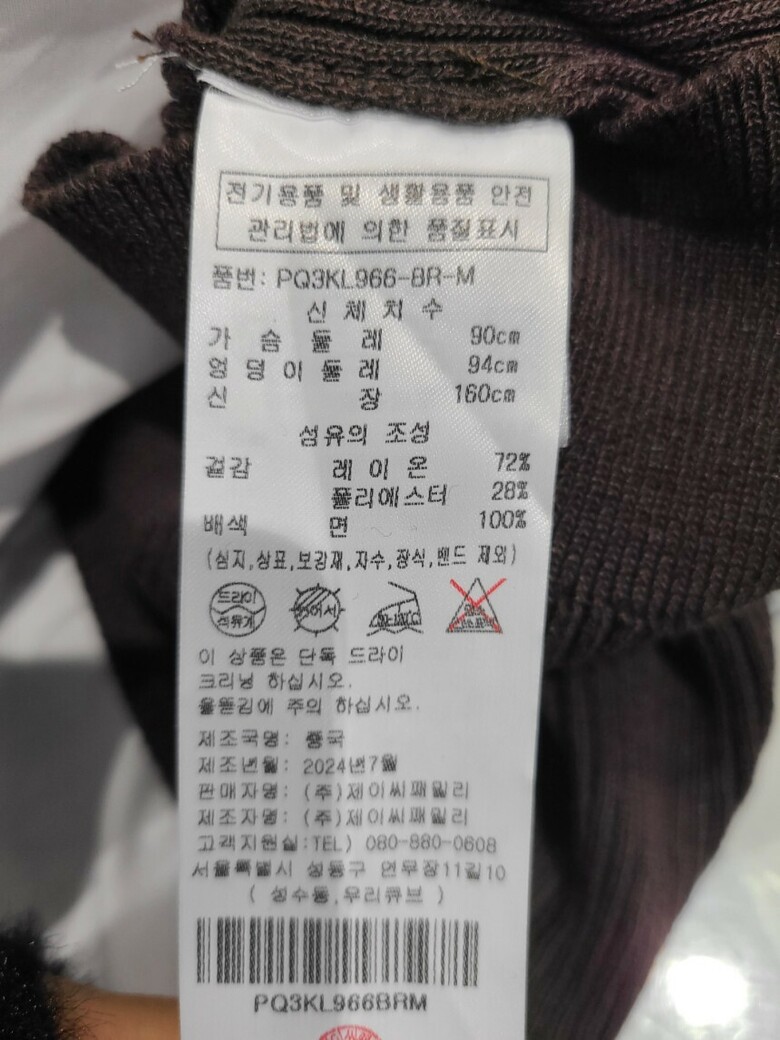 | 1. 제품 소재 (섬유의 조성 또는 혼용률을 백분율로 표시, 기능성인 경우 성적서 또는 허가서) | 레이온 72%, 폴리에스테르 28% / 배색:면 100% |