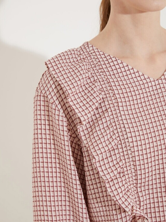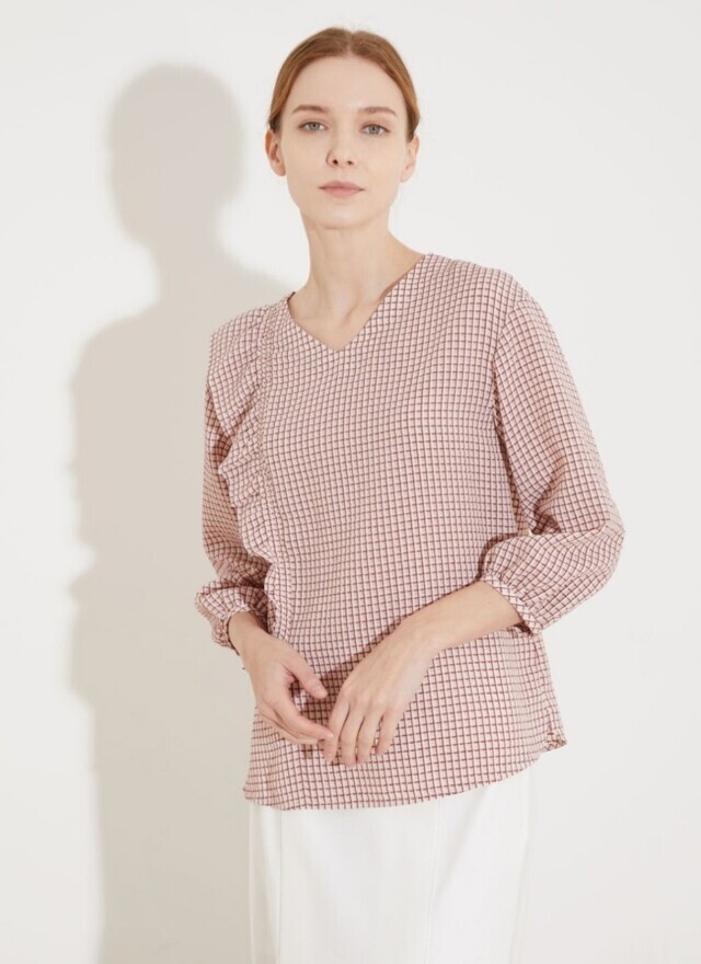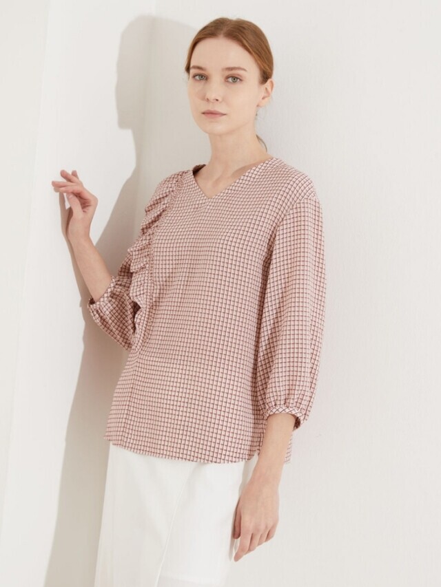 [올리비아로렌]체크 플릴 블라우스VOCNL3M4431