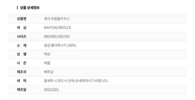 | 1. 제품 소재 (섬유의 조성 또는 혼용률을 백분율로 표시, 기능성인 경우 성적서 또는 허가서) | 상품상세참조 |