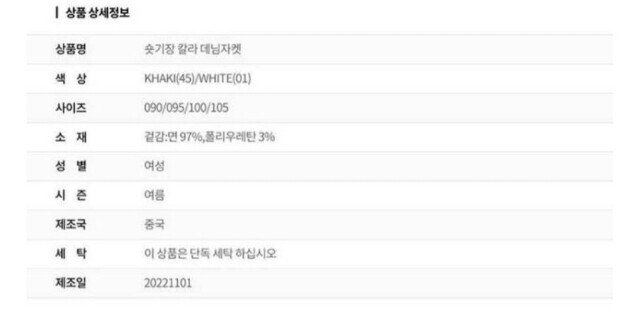 | 1. 제품 소재 (섬유의 조성 또는 혼용률을 백분율로 표시, 기능성인 경우 성적서 또는 허가서) | 상품상세참조 |