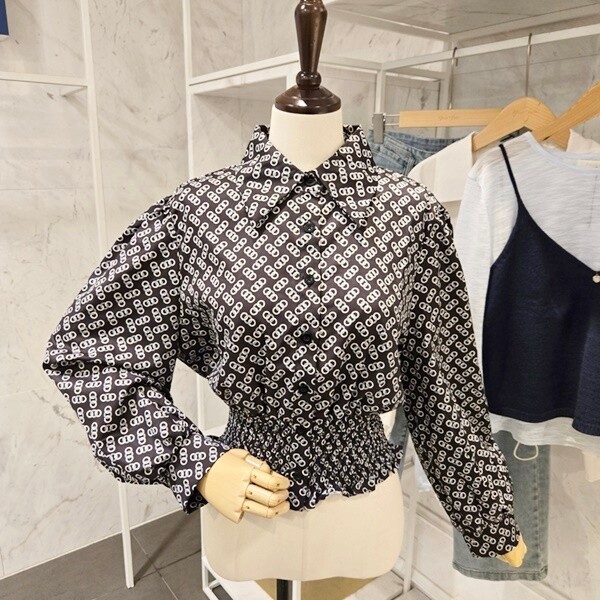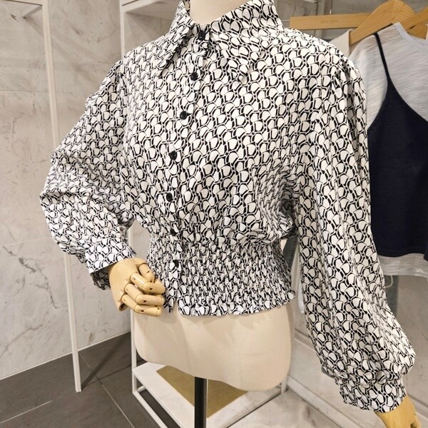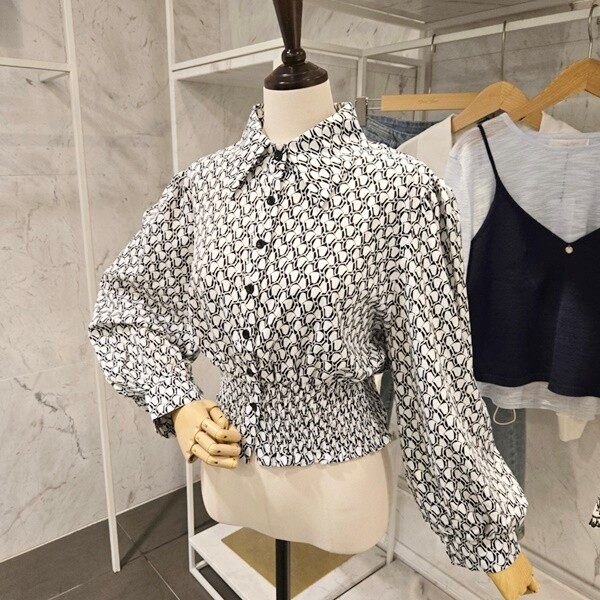 F5ABL007A_스모크 셔링 패턴 블라우스
