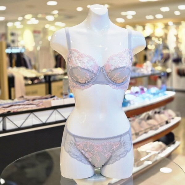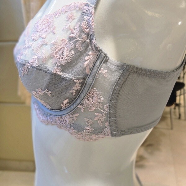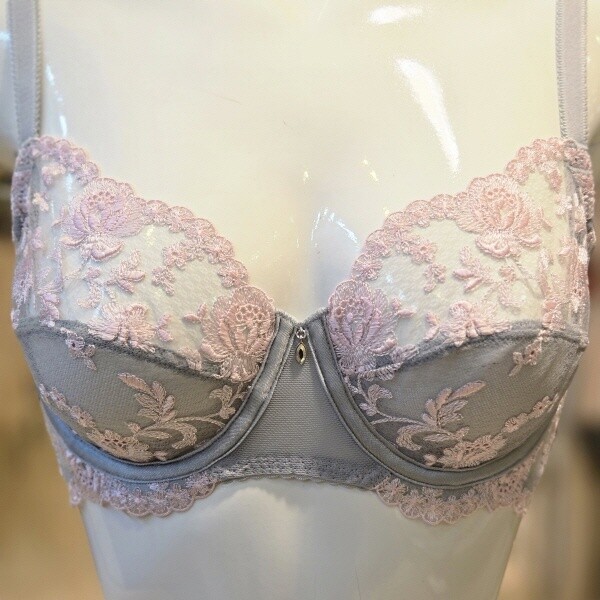 섬세하고 잔잔한 꽃자수가 아기자기한 샬루트 엔젤망 브라와 햄 팬티의 세트로 칼라 배합이 매력적이며 가슴을 안정적으로 감싸주는 쉐잎과 U자 날개로 편안하게 착용 가능한 제품