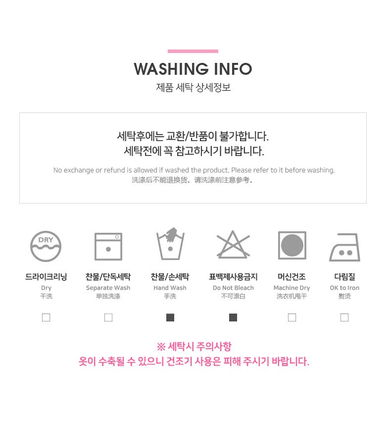 | 6. 세탁방법 및 취급시 주의사항 | 별도표시 |