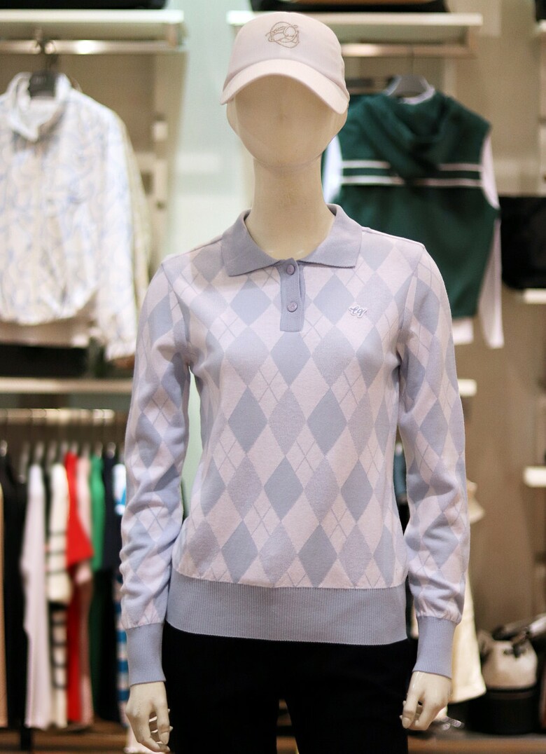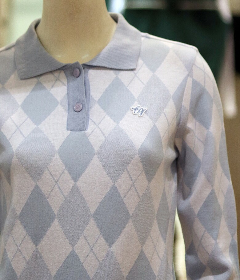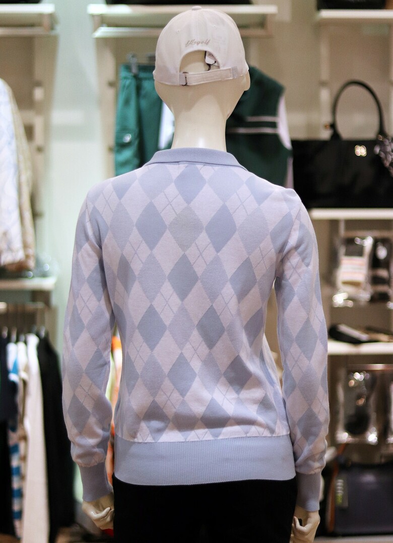 엘르골프 S/S 여성 전판 아가일 폴로넥 풀오버스웨터 6J-23602-801