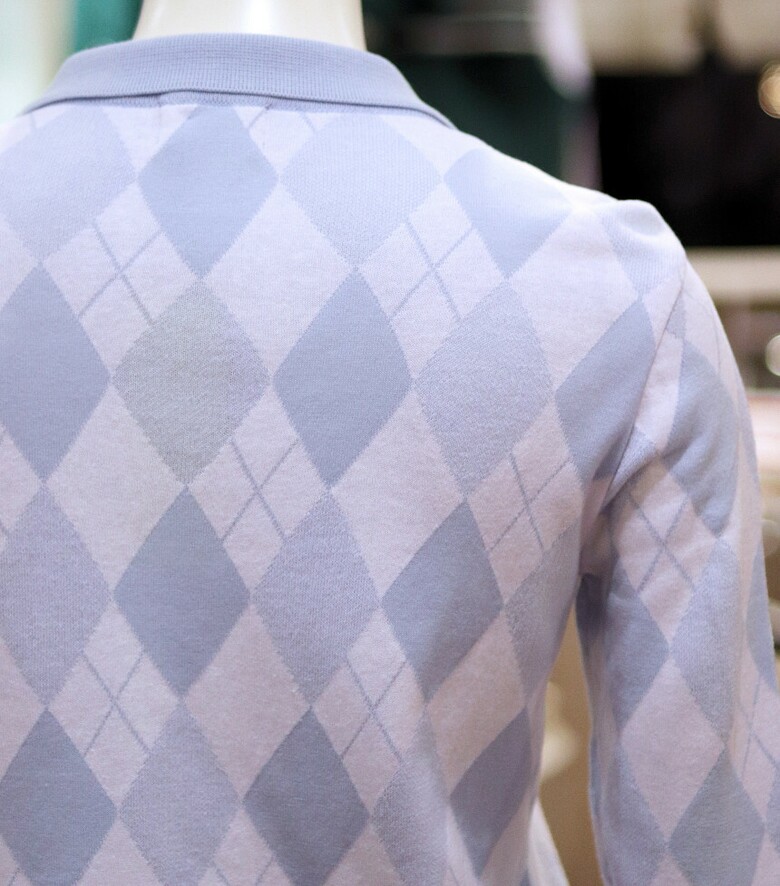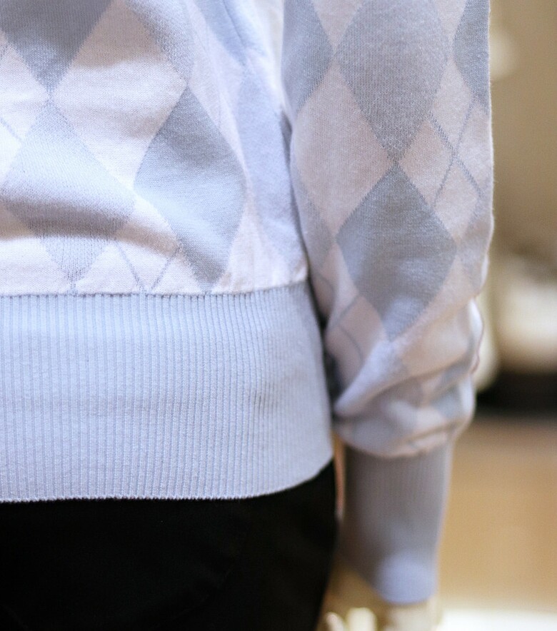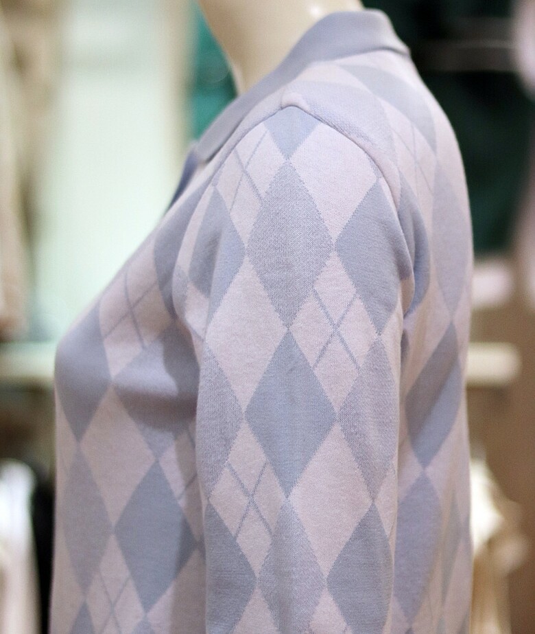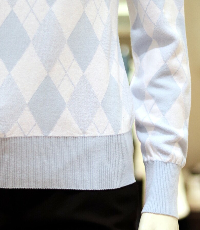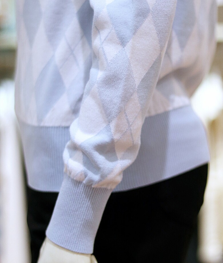클래식한 아가일 패턴의 폴로넥 풀오버 스웨터입니다