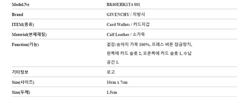 [명품] 지방시 BK60EHK1T4 001 4G 로고 카드지갑
