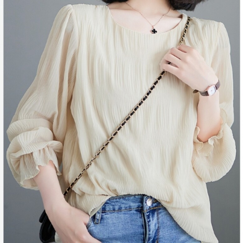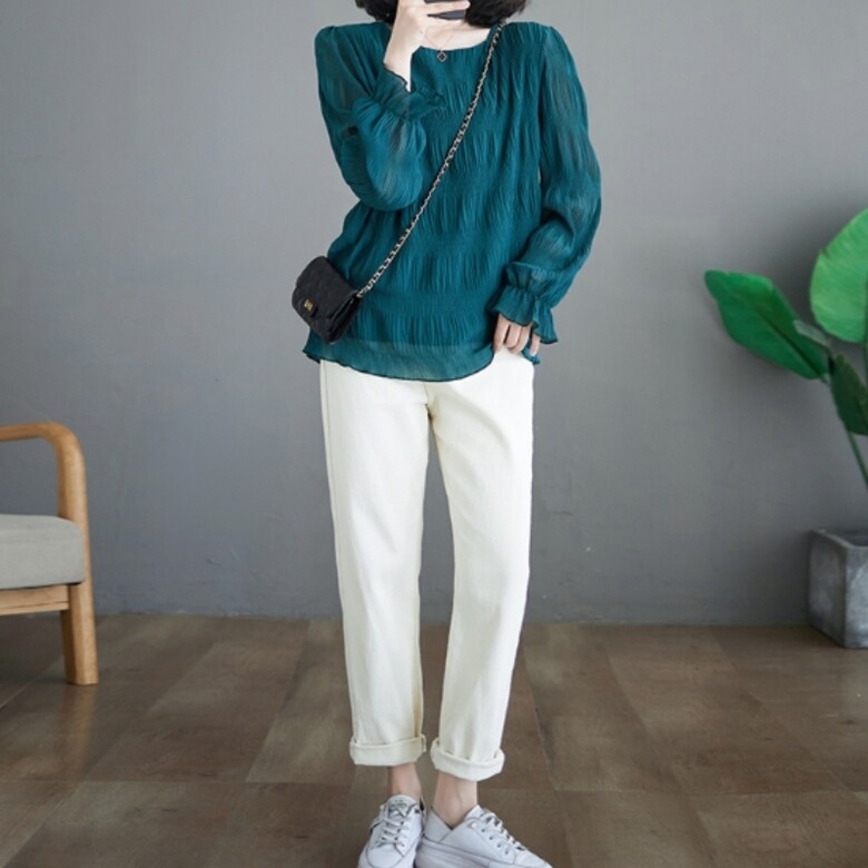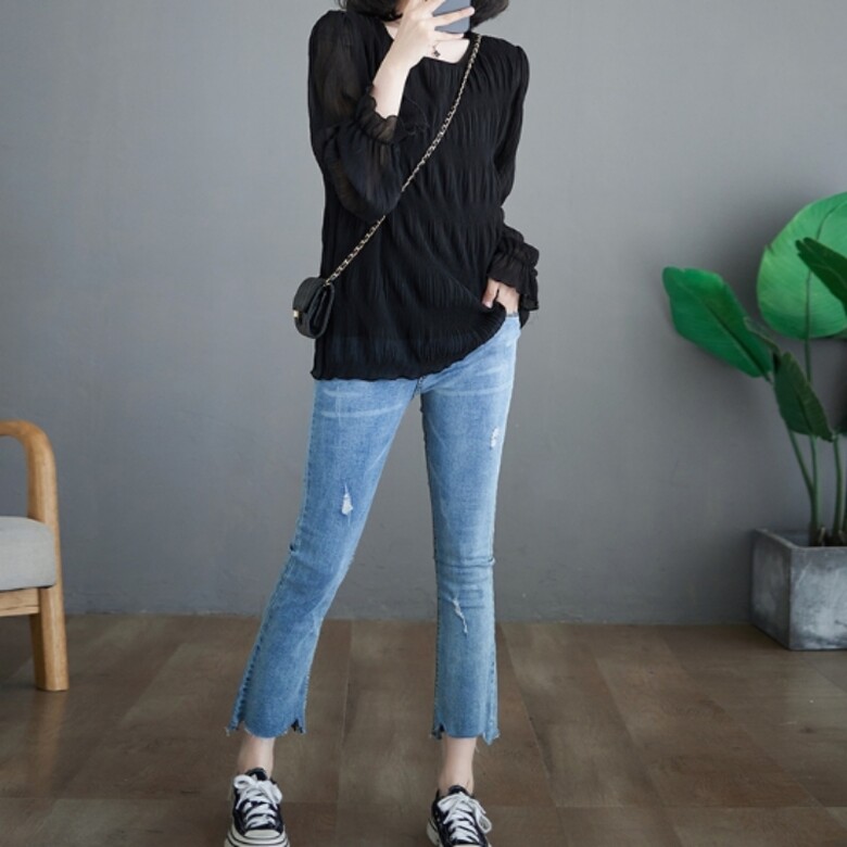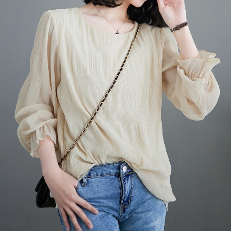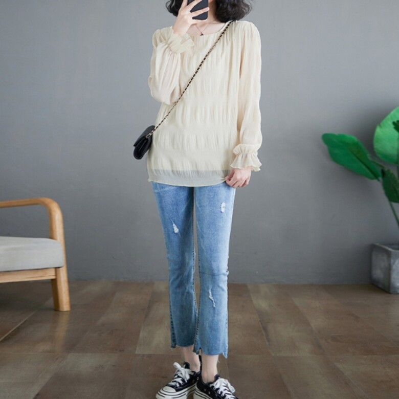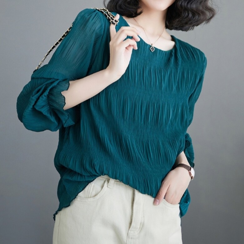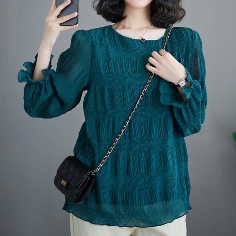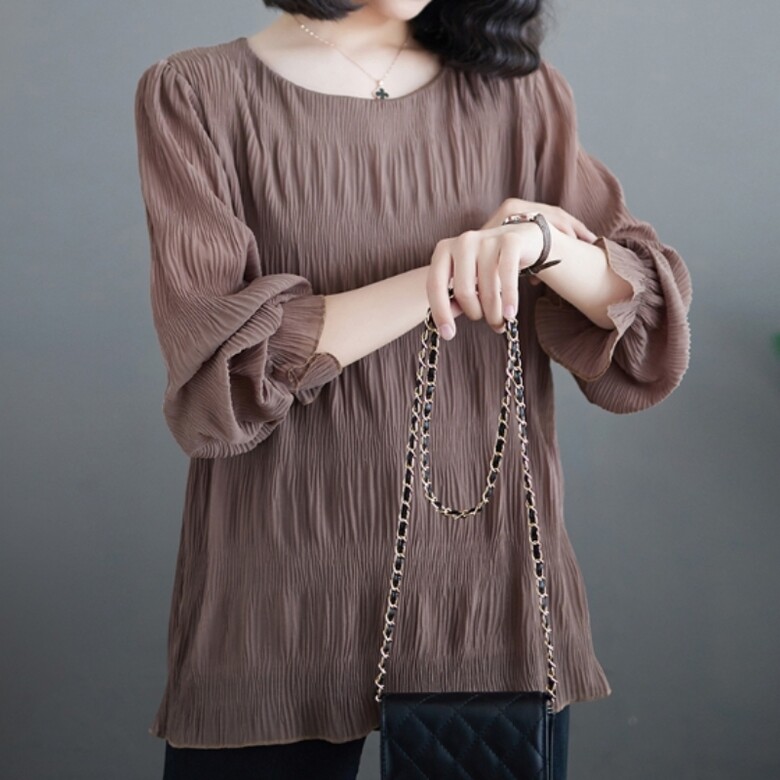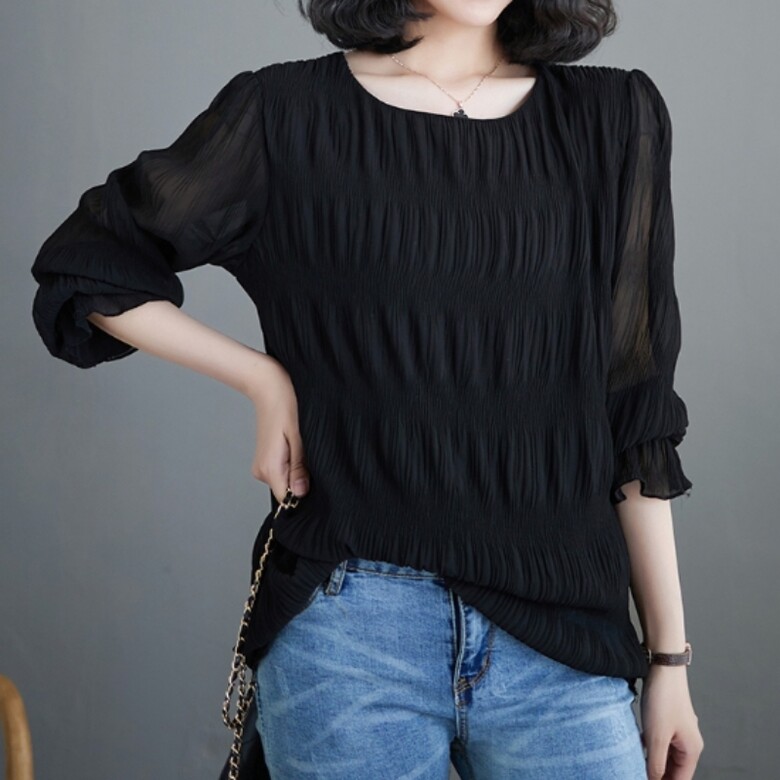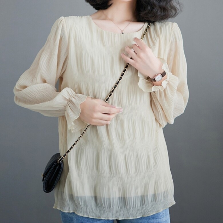 4COLOR 쿨 플리츠 라운드 블라우스_250405_SY07