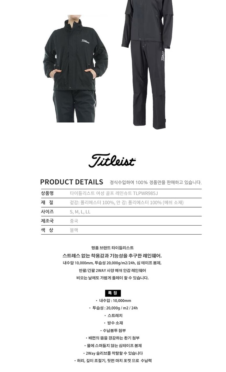 타이틀리스트 여성 레인웨어/비옷 상하의세트 TLPWR985J