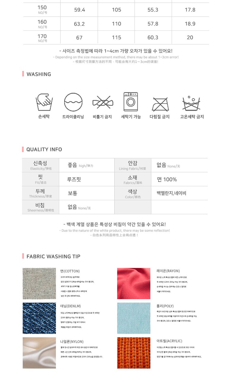 6. 세탁방법 및 취급시 주의사항 | 상세페이지 내 기재 |