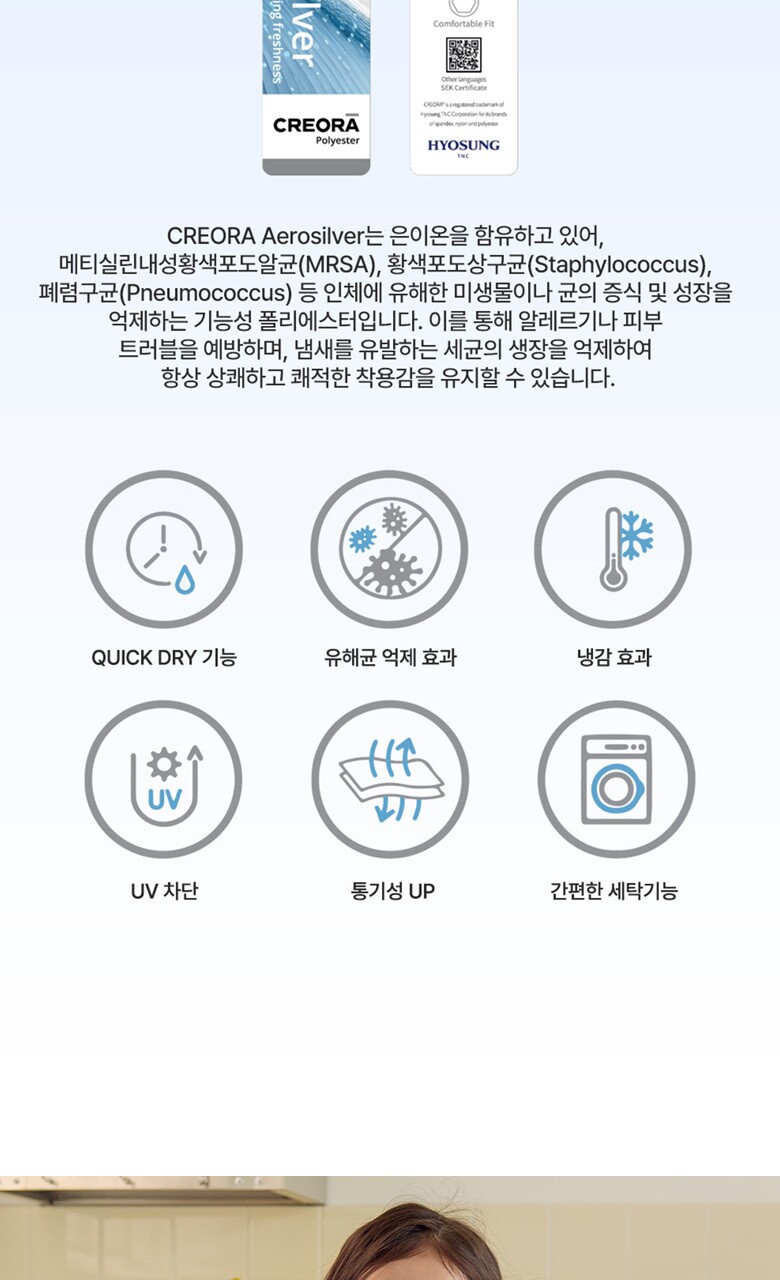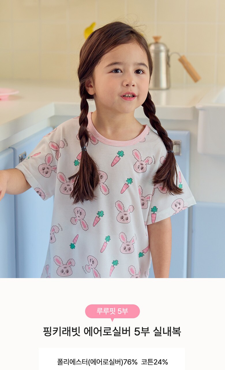 여름 향균 쿨 매쉬 에어로실버 핑키래빗 5부 실내복