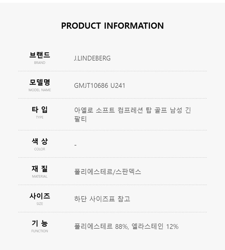 제이린드버그 긴팔 GMJT10686 U241 아엘로 소프트 컴프레션 탑 골프 남성긴팔티 당일발송