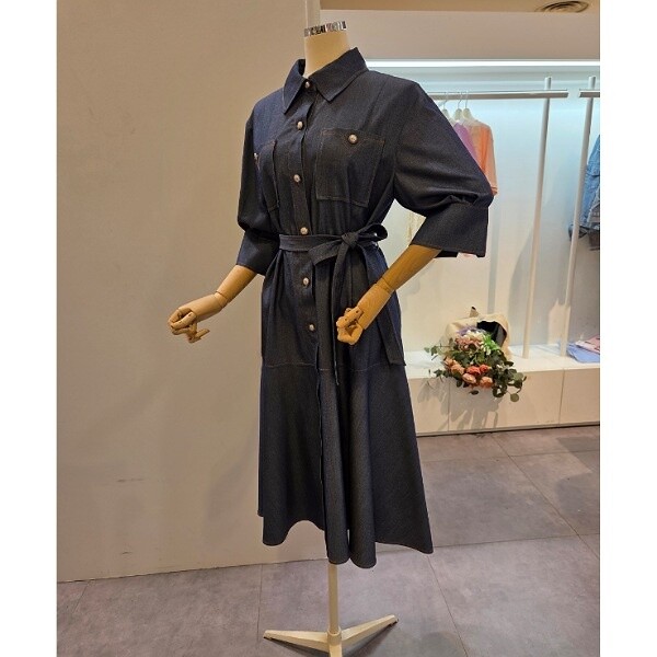 치수 : FREE / 어깨너비 44cm, 가슴단면 50cm, 소매기장 36cm, 허리단면 54cm, 총기장 111cm