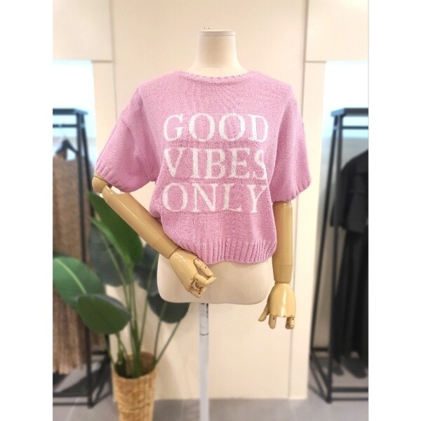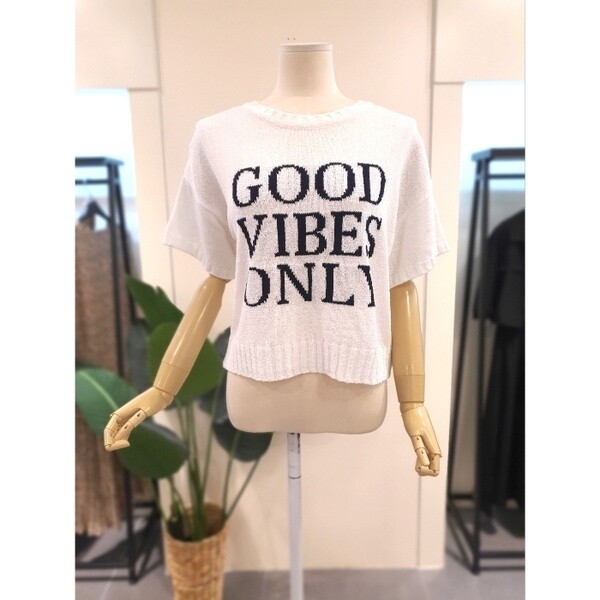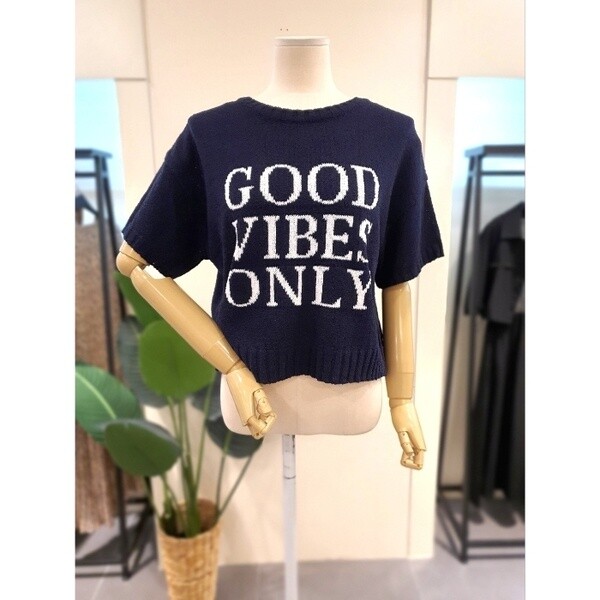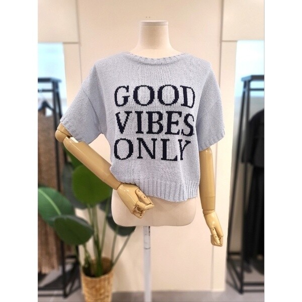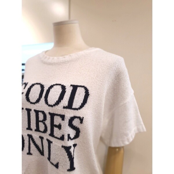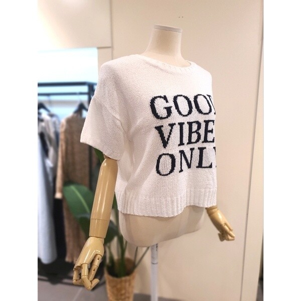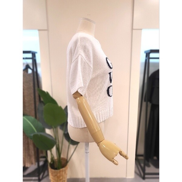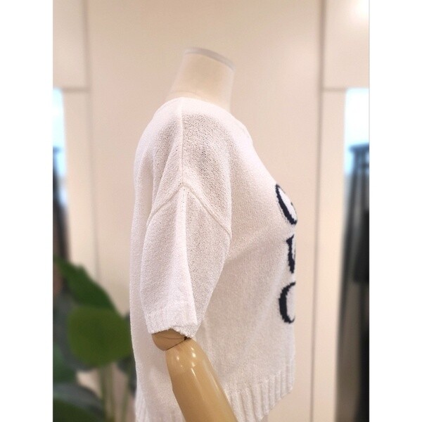 큼지막한 배색의 프린팅이 매력적인 반팔 니트입니다.