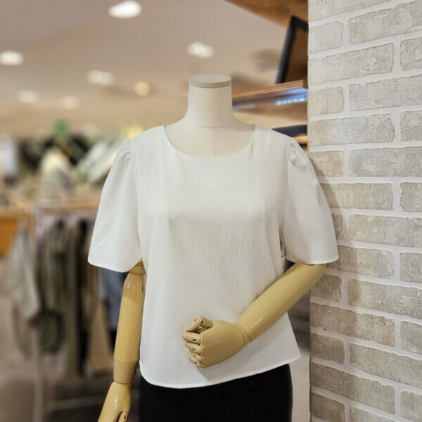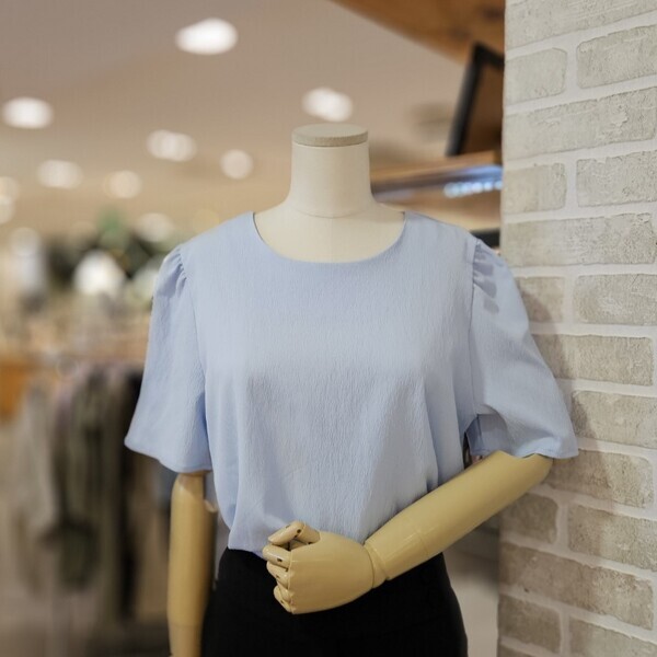 LC41E6BL007X_소매 셔링 반팔 블라우스