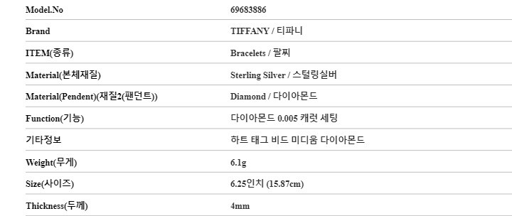 티파니앤코 팔찌 69683886 (69683878) 리턴 투 티파니 블루 하트 태그 비드 미디움 다이아몬드 실버 여성팔