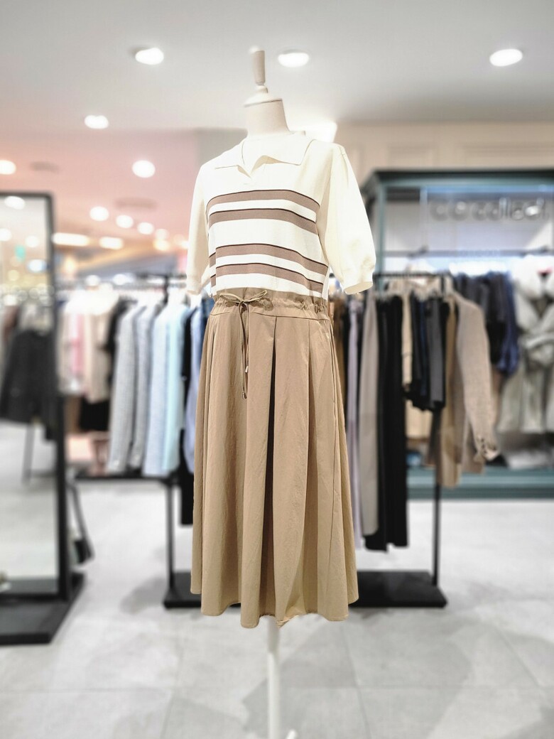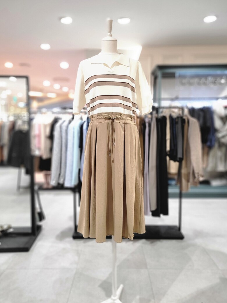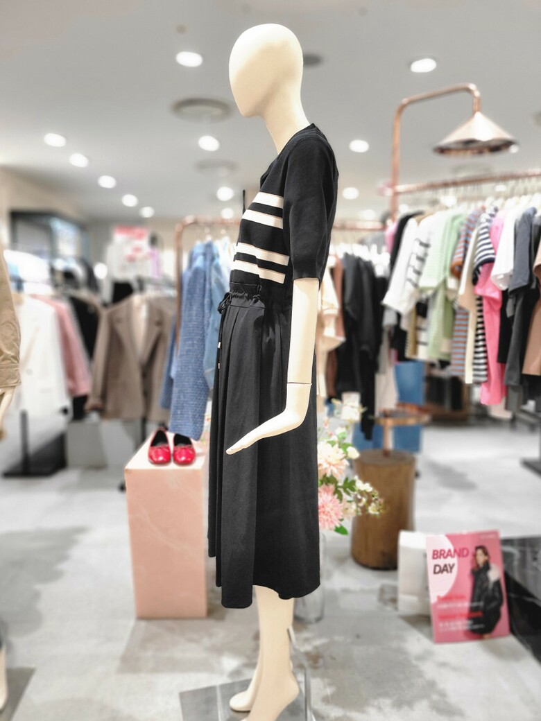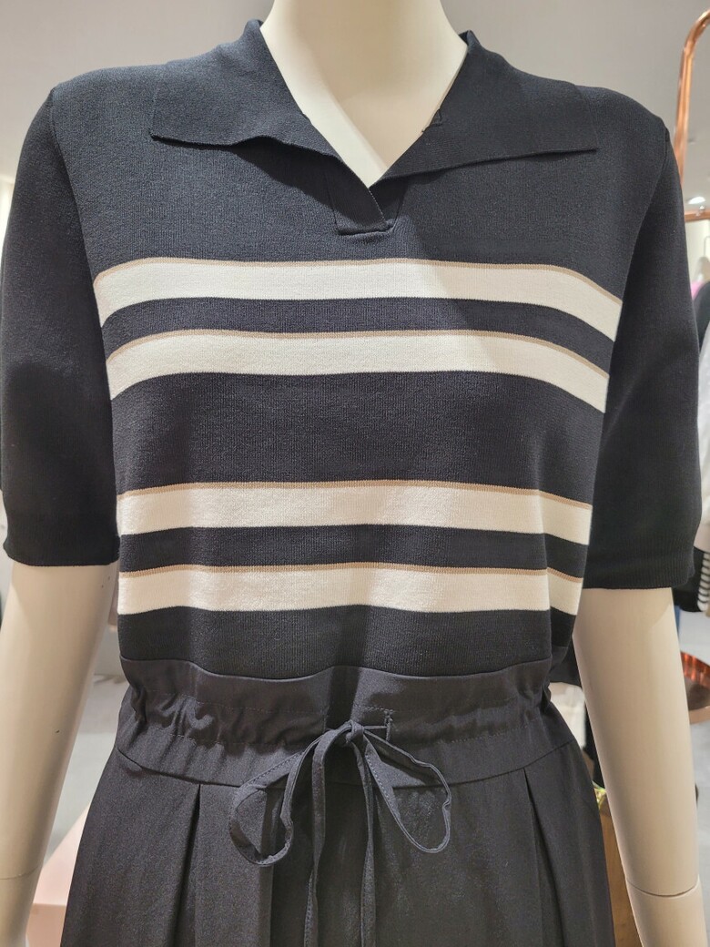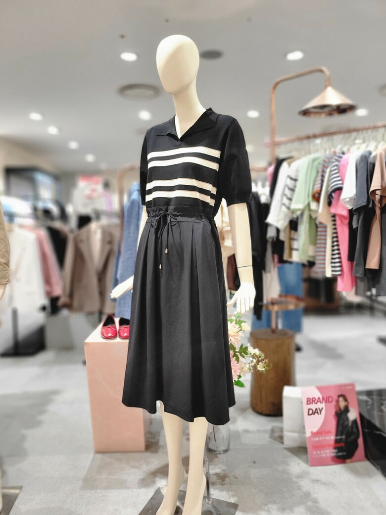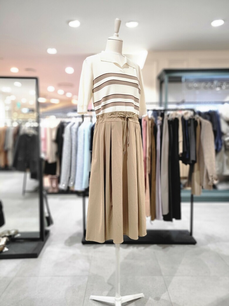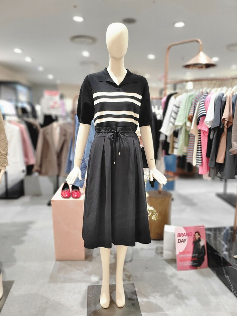 씨씨콜렉트 스트라이프 니트 블록 플레어 원피스 E252KSE141