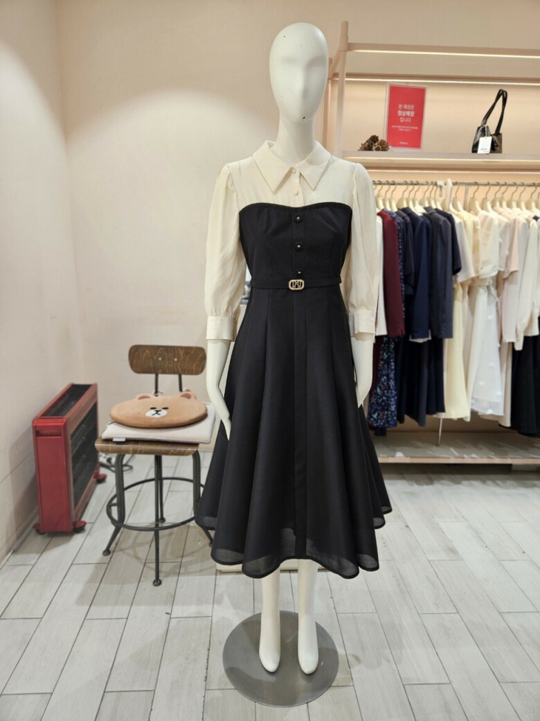 오간자 배색 뷔스티에 원피스 GR5A0OP611