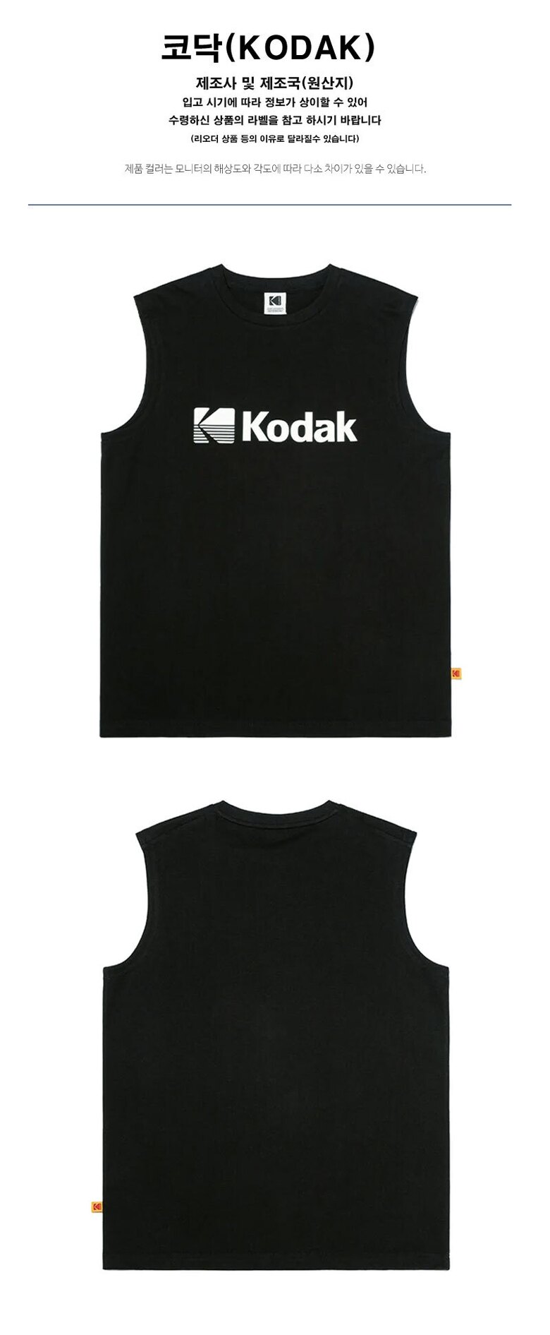 코닥 워딩 로고 세미오버핏 슬리브리스 K4223ESL51-BLK