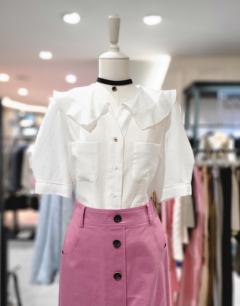씨씨콜렉트 칼라 포인트 시어 블라우스 E252PSC167