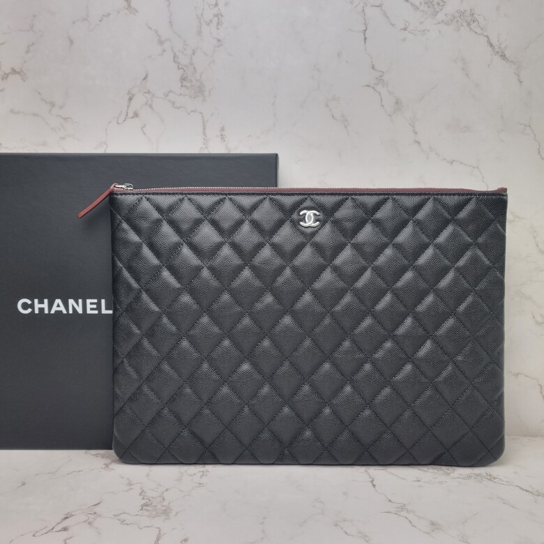 [명품] 샤넬 클래식 클러치 라지 캐비어 블랙 은장 A82552