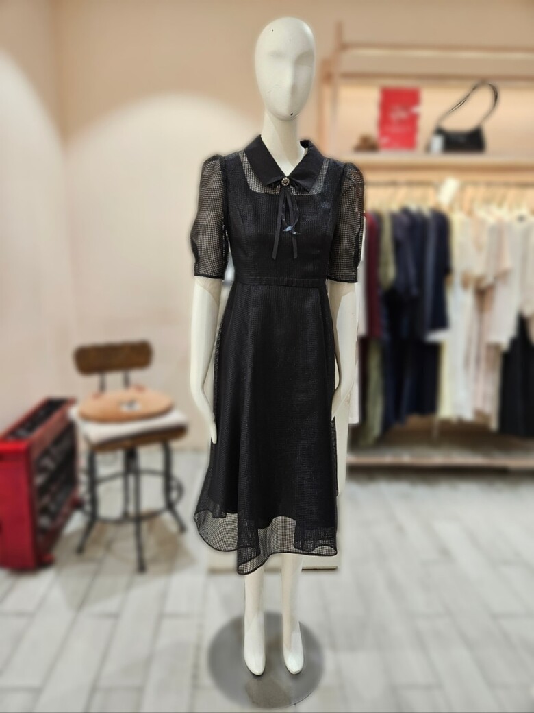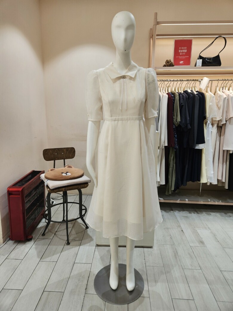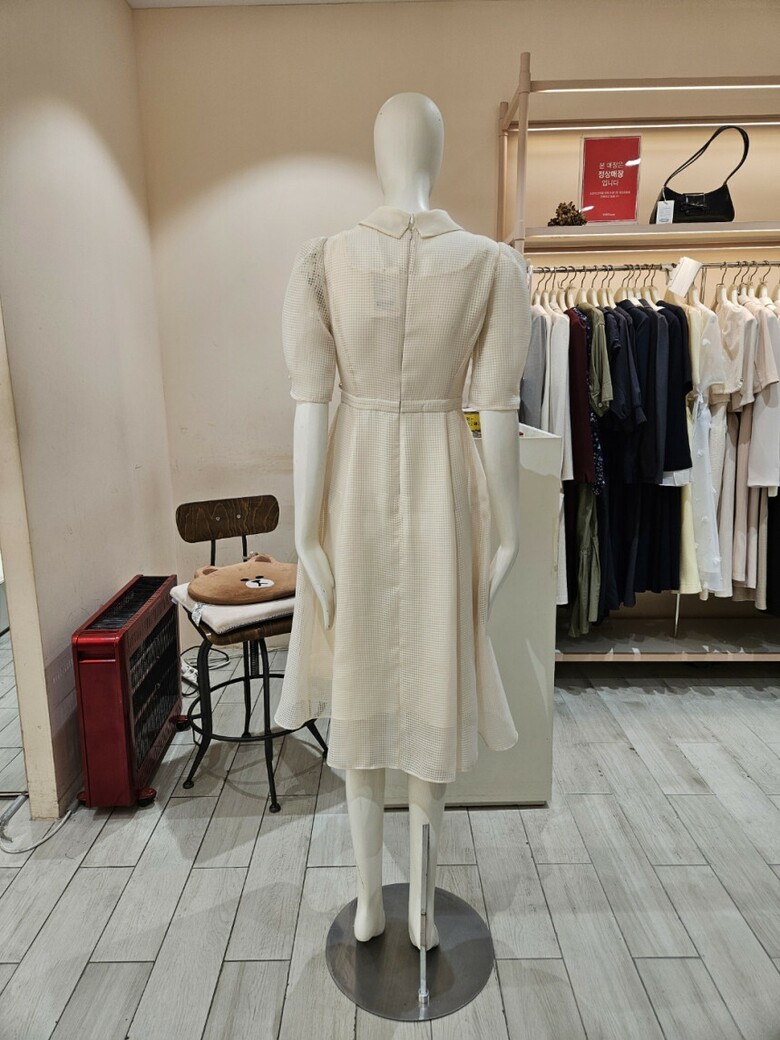 체크 퍼프 슬리브 플레어 원피스 GR5M0OPT11