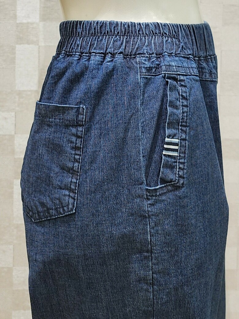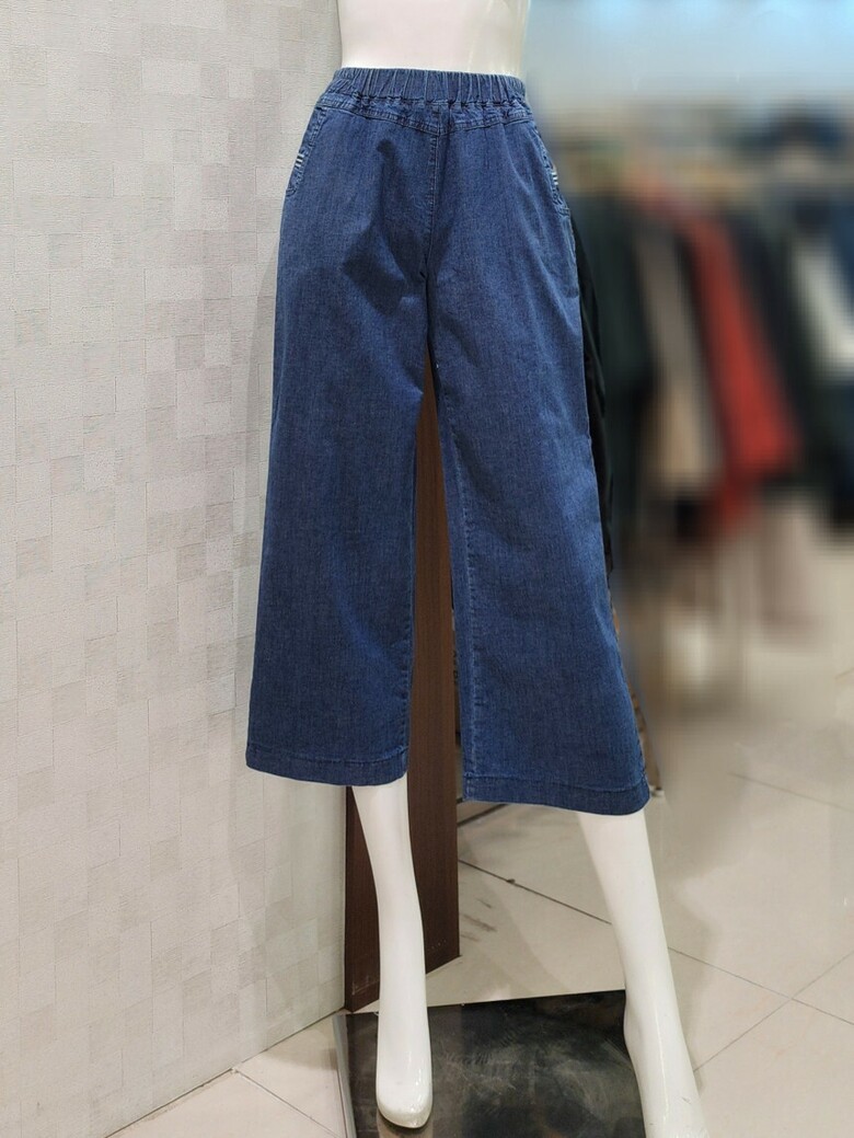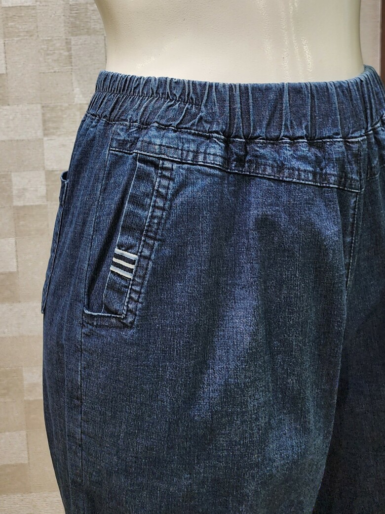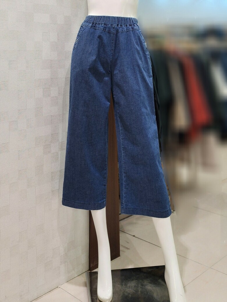8부 기장 밴딩 청바지.