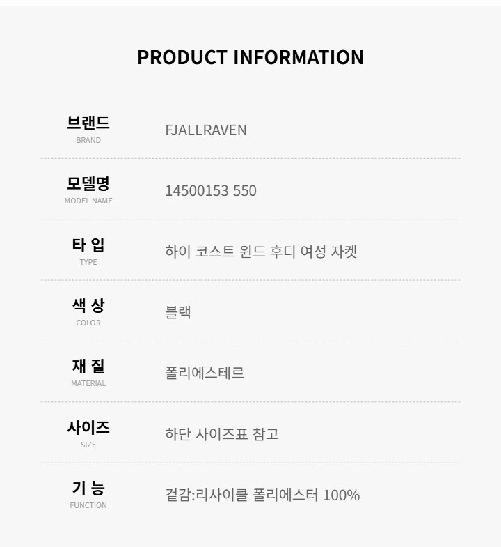 피엘라벤 자켓 14500153 550 하이 코스트 윈드 후디 여성자켓 당일발송