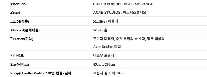 아크네스튜디오 머플러 CA0210 POWDER BLUE MELANGE 내로우 프린지 머플러 당일발송