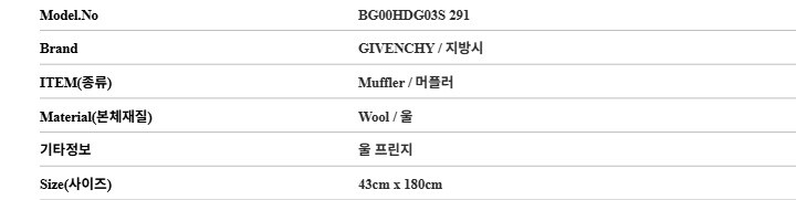 지방시 머플러 BG00HDG03S 291 4G 울 프린지 여성머플러 당일발송