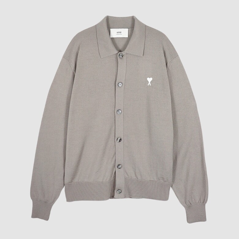 [럭스덕/국내당일] 아미 25SS 스몰 하트로고 울 카라 가디건 애쉬베이지 HKC221 KN0025 0952