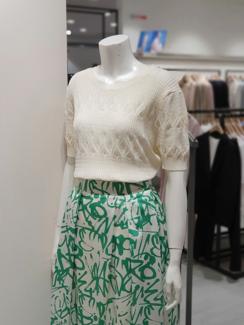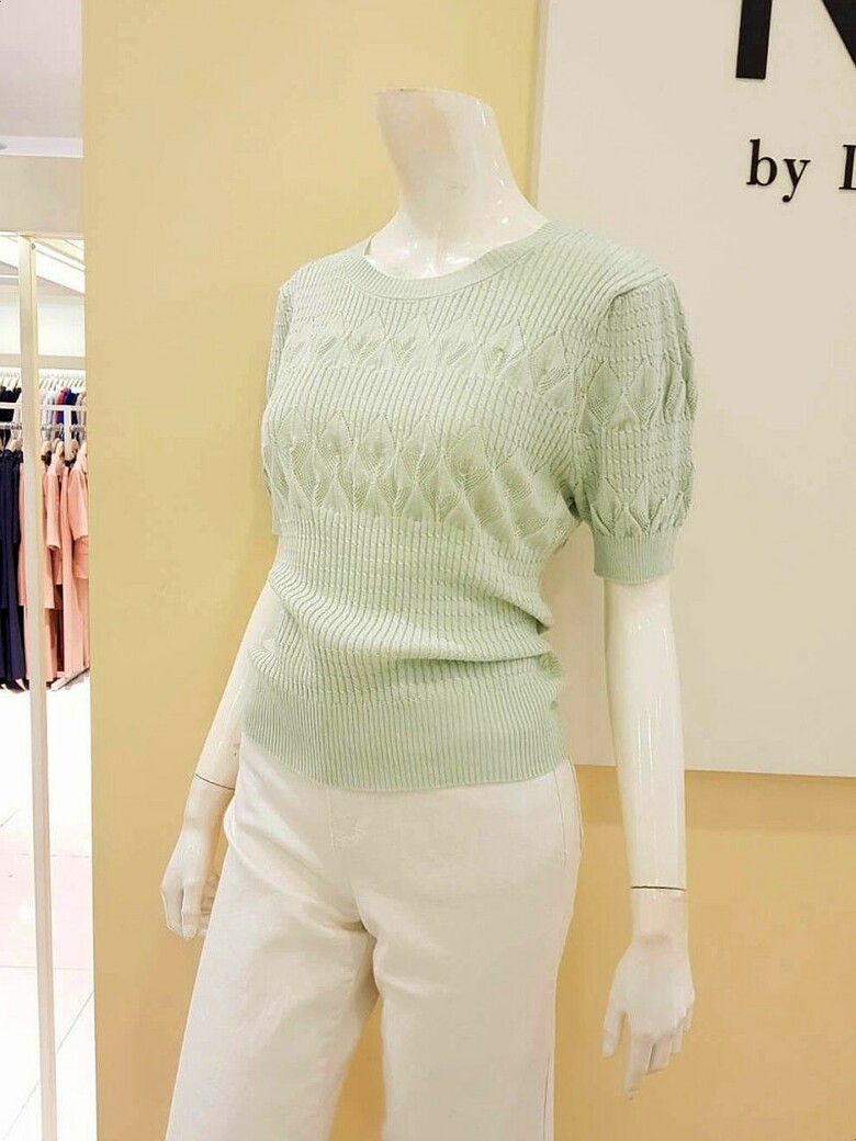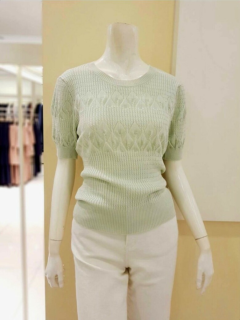 볼륨감 있는 슬리브로 여성스러움을 더해주는 풀오버 니트입니다.