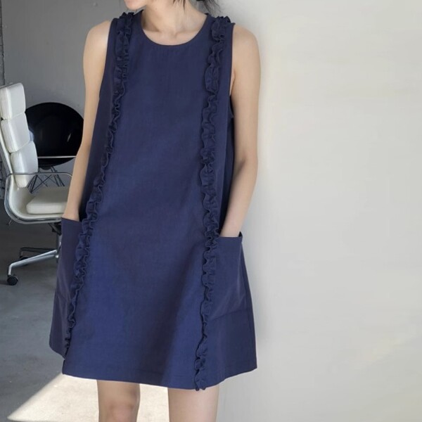 제이프 3COLOR 러플라인 민소매 원피스
