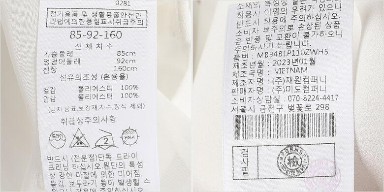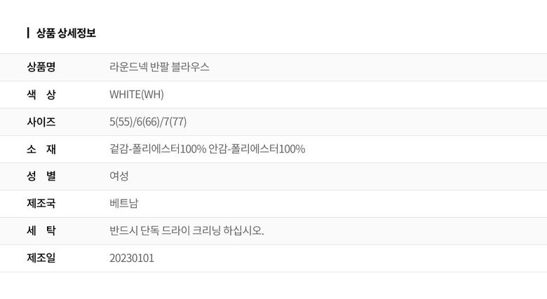 | 6. 세탁방법 및 취급시 주의사항 | 상세페이지 참조 |