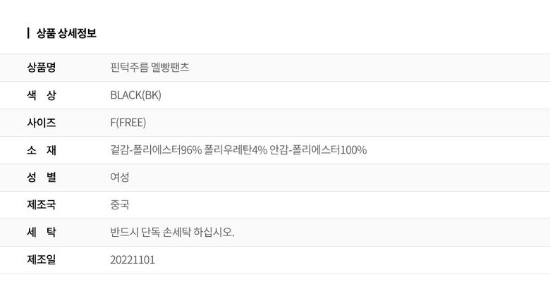 | 6. 세탁방법 및 취급시 주의사항 | 상세페이지 참조 |