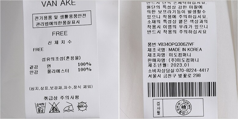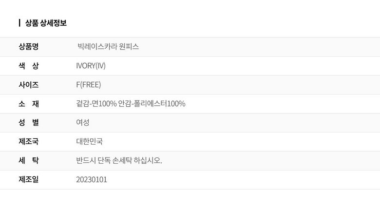 | 6. 세탁방법 및 취급시 주의사항 | 상세페이지 참조 |