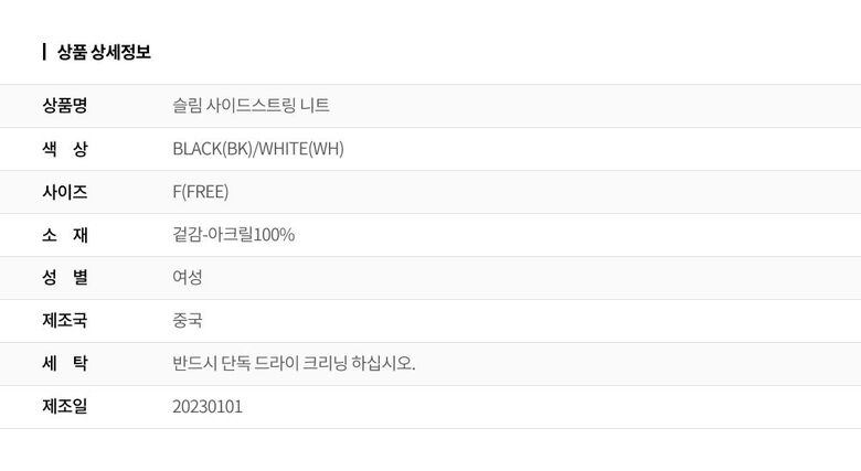 • 처음 배송된 상품상태와 다를 경우(세탁/착용 후 외출하신 경우) 반품이 불가합니다.