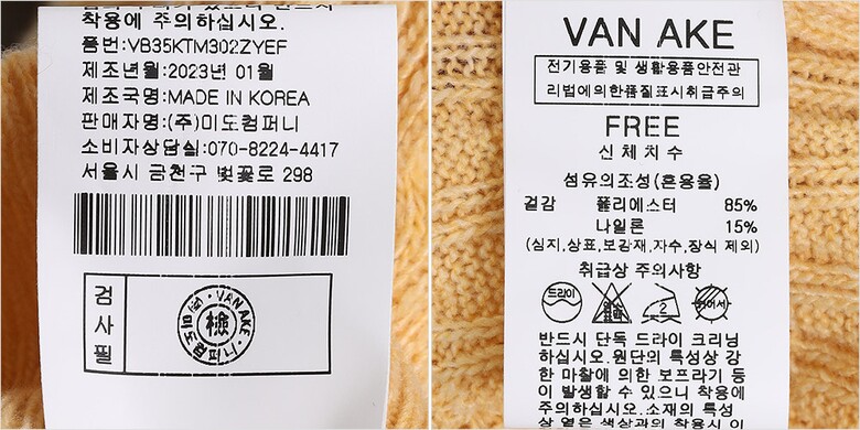 | 6. 세탁방법 및 취급시 주의사항 | 상세페이지 참조 |