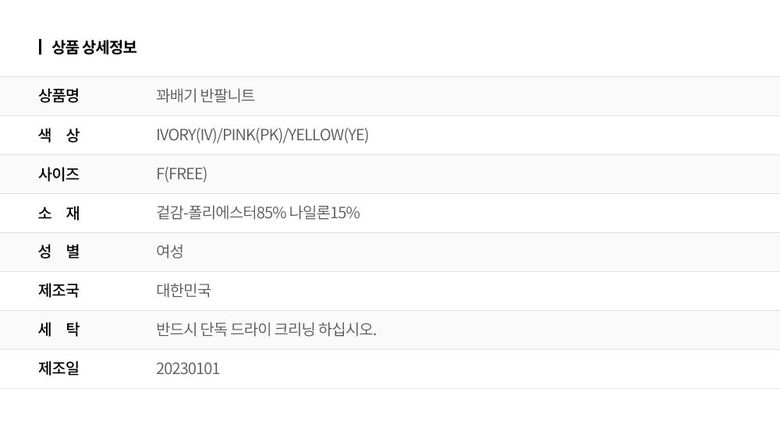 | 2. 색상 | 색상:IVORY(IV)/PINK(PK)/YELLOW(YE) |