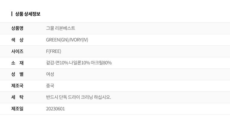 | 6. 세탁방법 및 취급시 주의사항 | 상세페이지 참조 |