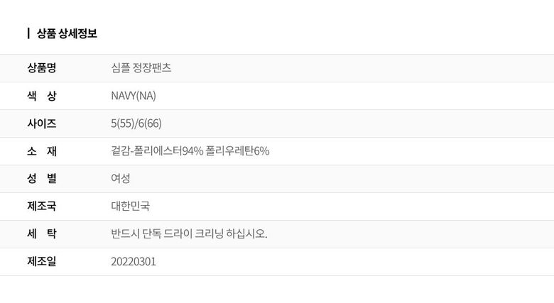 | 2. 색상 | 색상:NAVY(NA) |