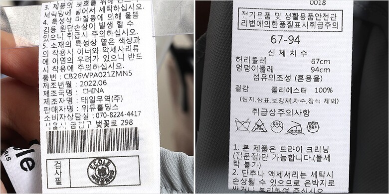 | 1. 제품 소재 (섬유의 조성 또는 혼용률을 백분율로 표시, 기능성인 경우 성적서 또는 허가서) | 겉감-폴리에스터100% |