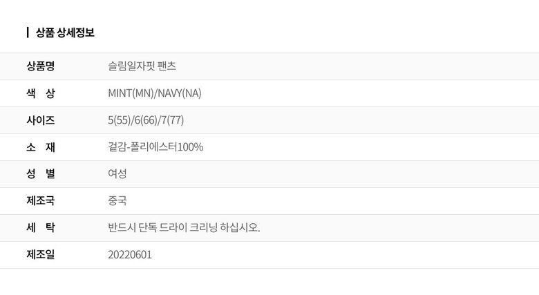 | 6. 세탁방법 및 취급시 주의사항 | 상세페이지 참조 |