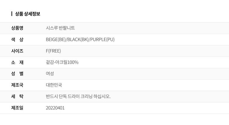 | 2. 색상 | 색상:BEIGE(BE)/BLACK(BK)/PURPLE(PU) |