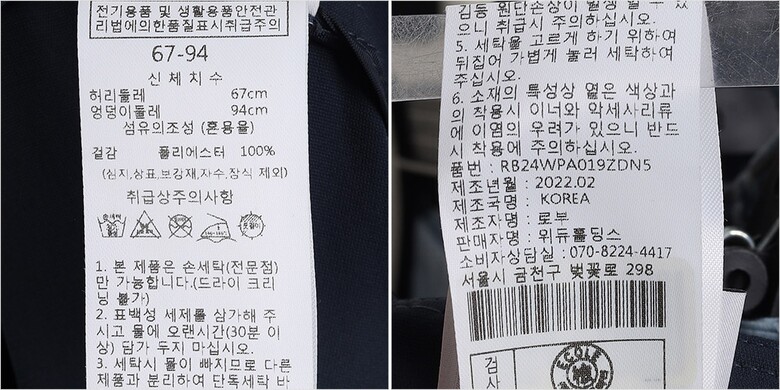 | 6. 세탁방법 및 취급시 주의사항 | 상세페이지 참조 |