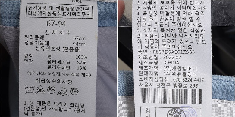 | 6. 세탁방법 및 취급시 주의사항 | 상세페이지 참조 |