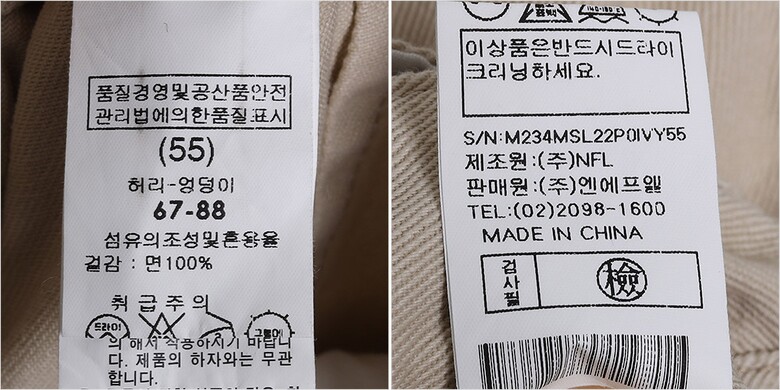 | 1. 제품 소재 (섬유의 조성 또는 혼용률을 백분율로 표시, 기능성인 경우 성적서 또는 허가서) | 겉감-면100% |