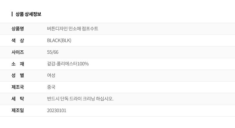 | 6. 세탁방법 및 취급시 주의사항 | 상세페이지 참조 |